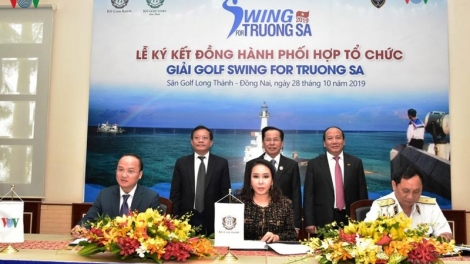 (VOVWORLD) - เมื่อเช้าวันที่ 28 ตุลาคม ณ จังหวัดเลิมด่ง ได้มีการจัดพิธีลงนามร่วมกันจัดการแข่งขัน Golf Swing for Truong Sa ระหว่างสถานีวิทยุเวียดนามหรือวีโอวี กองบัญชาการกองทัพเรือภาคที่ 4 และบริษัทหุ้นส่วนกามแรงจำกัด