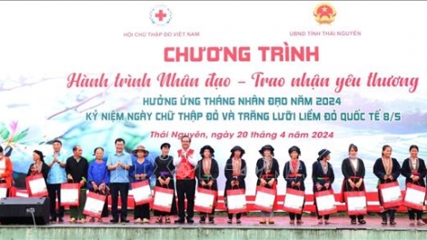(VOVWORLD) -เพื่อปฏิบัติกิจกรรมในเดือนแห่งมนุษยธรรมซึ่งจัดขึ้นในเดือนพฤษภาคมของทุกปี เมื่อวันที่ 20 เมษายน ที่ตำบล Phu Dinh อำเภอ Dinh Hoa จังหวัดท้ายเหงียน สภากาชาดเวียดนามส่วนกลางได้เปิดดำเนินโครงการ "“ขบวนการเพื่อมนุษยธรรม - การรับและมอบความรักใคร่” โดยการมีส่วนร่วมของผู้แทนสภากาชาดจาก 15 จังหวัดและนครทั่วประเทศและประชาชนท้องถิ่นจำนวนมาก