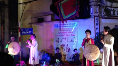 ( VOVworld )-ในวันหยุดสุดสัปดาห์ ตามย่านเก่าแก่ของฮานอยจะมีการจัดแสดงเพลงพื้นเมืองของเวียดนามให้ชาวฮานอยและนักท่องเที่ยวชาวต่างชาติได้รับชม การแสดงนี้อยู่ในกรอบ“ โครงการเพลงพื้นเมืองฮาแถ่ง-๓๖ สาย ” ซึ่งจัดโดยศูนย์พัฒนาศิลปะดนตรีเวียดนาม แม้ เวทีแสดงกลางแจ้งจะไม่ได้รับการตบแต่งอย่างหรูหราและการแสดงก็ไม่ใช่รายการขนาดใหญ่แต่ก็มีผู้มารอชมอย่างอุ่นหนาฝาคั่ง