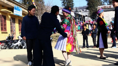 ( VOVworld )-ในช่วงนี้ ชนเผ่าม้งที่อาศัยอยู่ตามจังหวัดเขตเขาภาคเหนือประเทศเวียดนามได้ฉลองเทศกาลตรุษเต็ตตามประเพณีของชนเผ่าตนอย่างครึกครื้น เมื่อพิธีเซ่นไหว้บรรพบุรุษของแต่ละบ้านแล้วเสร็จ ชาวม้งจะสวมเสื้อผ้าและกระโปงสีฉุดฉาดสดสวยหลั่งไหลสู่ใจกลางของตำบล ส่วนหนุ่มสาวชาวม้งจะพากันไปยังบริเวณกลางแจ้งที่เชิงเขาเพื่อร่วมงานเทศกาลท่ามกลางแสงแดดอันอบอุ่นของฤดูใบไม้ผลิ