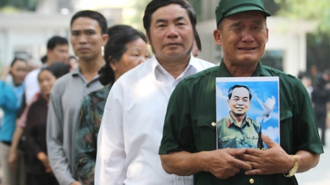 (VOVworld)-ในช่วงหลายวันก่อนแม้จะยังไม่ถึงวันประกอบพิธีเคารพศพและไว้อาลัยท่านอย่างเป็นทางการก็ตามแต่ประชาชนทุกชั้นชนทุกเพศทุกวัยนับพันคนก็ได้มายืนเข้าแถวยาวเป็นกิโลเมตรตั้งแต่หน้าสุสานประธานโฮจิมินห์ไปจนถึงบ้านเลขที่ 30 ถนนหว่างเหยี่ยวเพื่อเข้าเคารพศพและอำลาท่านเป็นครั้งสุดท้าย