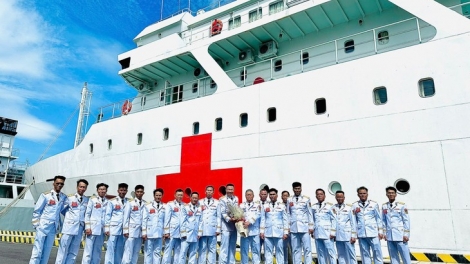 (VOVWORLD) - เมื่อกล่าวถึงหมู่เกาะเจื่องซาหรือสเปรตลีย์ ทุกคนมักจะนึกถึงภาพเหล่าทหารเรือที่กำลังปกป้องน่านน้ำและน่านฟ้าที่เกาะแนวหน้าต่างๆ ของประเทศ เพื่อเสริมความมั่นคงให้แก่ทหารเหล่านั้น จำเป็นต้องมีโรงพยาบาลเคลื่อนที่บนทะเล ซึ่งถือเป็น “สะพานแห่งความรัก” ที่เชื่อมแผ่นดินใหญ่กับเกาะแก่งที่ห่างไกล กองพลเรือ 955 กองทัพเรือภาคที่ 4 โดยเฉพาะเรือ 561 ซึ่งถือเป็นโรงพยาบาลเคลื่อนที่ที่มีภารกิจสองอย่างคือดูแลสุขภาพให้แก่ทหารและชาวประมงบนทะเลและพาคณะไปเยือนหมู่เกาะเจื่องซาอันศักดิ์สิทธิ์ของประเทศ