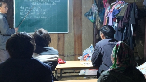 (VOVWORLD) - ชั้นเรียนขจัดความไม่รู้หนังสือที่จัดโดยตำรวจและทางการท้องถิ่นสำหรับครอบครัวชนเผ่าม้ง 12 ครอบครัวที่หมู่บ้านหลุงสับ ตำบลก๊วกตว๋าน อำเภอกว๋างหว่า จังหวัดกาวบั่งได้ช่วยให้ชาวบ้านสามารถอ่านออกเขียนได้