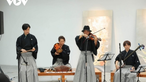 (VOVWORLD) - ในกรอบกิจกรรมเพื่อมุ่งสู่การรำลึกครบรอบ 50 ปี การสถาปนาความสัมพันธ์ทางการทูตระหว่างเวียดนามกับญี่ปุ่นในปี 2023 เมื่อเดือนตุลาคมที่ผ่านมา ได้มีการจัดงานคอนเสิร์ตการกุศล “Ryoma Quartet – Sức sống mới” ภายใต้ความร่วมมือระหว่างวงดนตรี Ryoma Quartet ของญี่ปุ่นกับวงดนตรี Sức sống Mới ของเวียดนาม ซึ่งผู้ชมเวียดนามได้มีโอกาสศึกษาค้นคว้าเกี่ยวกับเครื่องดนตรีพื้นเมืองของญี่ปุ่นผ่านการแนะนำของสมาชิกวง Ryoma Quartet