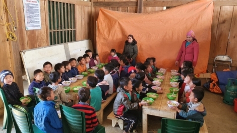 มื้ออาหารที่อบอุ่นและเต็มไปด้วยความรักสำหรับนักเรียนในเขตเขาบั๊กก่าน
