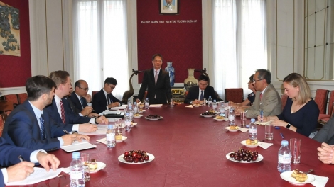 (VOVWORLD) - ในกรอบการเยือนสหภาพยุโรปและประเทศเบลเยียม วันที่ 18 มิถุนายน รัฐมนตรีว่าการกระทรวงอุตสาหกรรมและพาณิชย์เวียดนาม เจิ่นต๊วนแอง ได้พบปะกับตัวแทนสถานประกอบการยุโรป