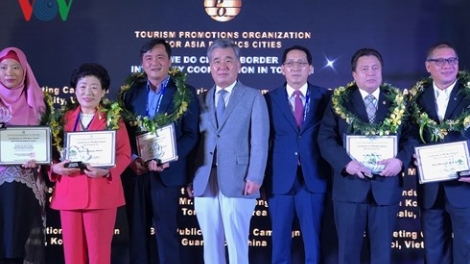 (VOVWORLD) - เมื่อค่ำวันที่ 22 มิถุนายน ณ นครโฮจิมินห์ ในพิธีปิดฟอรั่มส่งเสริมการท่องเที่ยวนครต่างๆในเอเชียแปซิฟิกหรือ TPO ครั้งที่ 8 ปี 2018 ได้มีการจัดพิธีมอบรางวัล TPO ใน 10 สาขาให้แก่บุคคลและหมู่คณะ ซึ่งในด้านการท่องเที่ยว นครโฮจิมินห์และกรุงฮานอยได้รับรางวัลยุทธศาสตร์การตลาดดีที่สุดประจำปี 2018