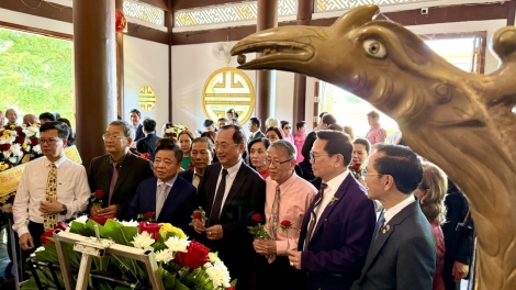 (VOVWORLD) - เมื่อวันที่ 18 พฤษภาคม ณ อนุสรณ์สถานประธานโฮจิมินห์ในจังหวัดอุดรธานี ประเทศไทย สถานกงสุลใหญ่เวียดนามประจำจังหวัดขอนแก่นได้ประสานกับสำนักพิมพ์การศึกษาเวียดนามจัดพิธีเปิดตัวหนังสือสองภาษาเวียดนาม-ไทย “ลุงโฮพำนัก ณ ประเทศไทย” เนื่องในโอกาสรำลึกครบรอบ 135 ปีวันคล้ายวันเกิดประธานโฮจิมินห์ 19 พฤษภาคม