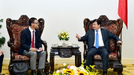(VOVworld) – รองนายกรัฐมนตรีจิ่งดิ่งหยุงให้การต้อนรับผู้อำนวยการใหญ่บริษัทอุตสาหกรรมหนักดูซานเวียดนามจำกัดของสาธารณรัฐเกาหลีและนายกรรมการผู้จัดการใหญ่กลุ่มบริษัทเอสซีจีของไทย