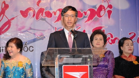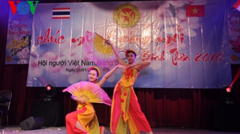 (VOVworld) - ท่ามกลางบรรยากาศของการต้อนรับตรุษเต๊ตปีวอก 2016 อย่างคึกคัก ขอเริ่มต้นด้วยกิจกรรมการฉลองปีใหม่ประเพณีของชาวเวียดนามที่อาศัยในกรุงเทพฯและเขตปริมณฑลกว่า500 คนเมื่อค่ำวันที่ 26 มกราคม โดยบรรดาผู้เข้าร่วมงานได้มีโอกาสลิ้มลองอาหารพื้นเมืองเวียดนาม เช่นแบ๊งจึงหรือขนมข้าวต้มมัดใหญ่และหมูยอและรับฟังบทเพลงที่ยกย่องบ้านเกิดจากนักร้องที่มาจากประเทศเวียดนาม