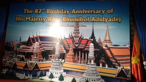 (VOVworld) –สถานทูตไทยประจำเวียดนามได้จัดงานเฉลิมพระเกียรติพระบาทสมเด็จพระเจ้าอยู่หัวเนื่องในโอกาสมหามงคลเฉลิมพระชนมพรรษา 87 พรรษา 5 ธันวาคมโดยมีตัวแทนของกระทรวง หน่วยงานเวียดนามและตัวแทนนักการทูตของประเทศต่างๆเข้าร่วม