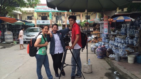 คณะผู้สื่อข่าวจากสถานีวิทยุโทรทัศน์เอ็นบีทีไทยทำสคริปวีดีทัศน์เกี่ยวกับกรุงฮานอย