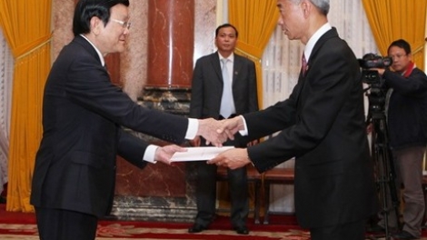 (VOVWorld)-ในโอกาสมารับหน้าที่ ณ เวียดนามตามวาระ ท่าน ปัญญรักษ์ พูลทรัพย์ได้เข้ายื่นสาส์นตราตั้งต่อท่านเจืองเติ๊นซาง ประธานประเทศเวียดนาม