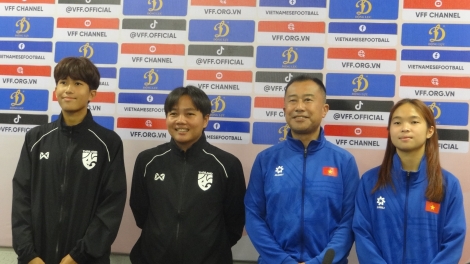 (VOVWORLD) - เช้าวันที่ 2 เมษายน คุณ Okiyama Masahiko โค้ชทีมฟุตบอลหญิงทีมชาติเวียดนาม รุ่นอายุไม่เกิน 17 ปี และธิดารัตน์ วิวาสุขุ หัวหน้าผู้ฝึกสอนฟุตบอลหญิงทีมชาติไทยรุ่นอายุไม่เกิน 17 ปีได้ร่วมการแถลงข่าวเกี่ยวกับการแข่งขันฟุตบอลกระชับมิต Thailand – Vietnam U17 Women Football Friendship Match