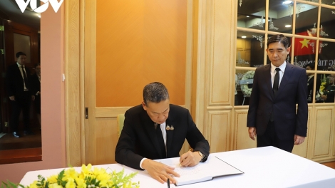 (VOVWORLD) - นาย เศรษฐา ทวีสิน นายกรัฐมนตรีไทยมีคำสั่งให้ส่วนราชการและรัฐวิสาหกิจลดธงครึ่งเสาทั่วราชอาณาจักรเพื่อไว้อาลัยแด่ท่านเลขาธิการพรรคคอมมิวนิสต์เวียดนามเหงวียนฟู้จ่อง