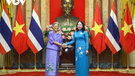 (VOVWORLD) -วันที่ 13 สิงหาคม ณ ทำเนียบประธานประเทศ นาง หวอถิแอ๊งซวน รองประธานประเทศเวียดนามได้ให้การต้อนรับสมเด็จพระกนิษฐาธิราชเจ้า กรมสมเด็จพระเทพรัตนราชสุดาฯ สยามบรมราชกุมารีที่กำลังอยู่ระหว่างการเยือนเวียดนามในระหว่างวันที่ 13 -15 สิงหาคม
