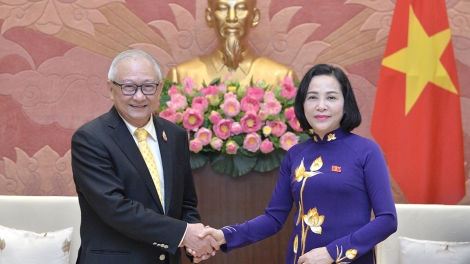 (VOVWORLD) - เมื่อบ่ายวันที่ 27 มิถุนายน ณ อาคารสภาแห่งชาติ รองประธานสภาแห่งชาติ เหงวียนถิแทง ได้ให้การต้อนรับนาย ศักดิ์ชัย ธนบุญชัย ประธานกลุ่มมิตรภาพสมาชิกรัฐสภาไทย-เวียดนามและคณะฯ
