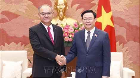 ประธานสภาแห่งชาติ เวืองดิงเหวะ ให้การต้อนรับพลเอก สิงห์ศึก สิงห์ไพร รองประธานวุฒิสภาคนที่หนึ่งของไทย