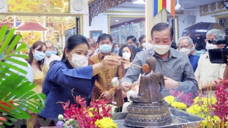 (VOVWORLD) -เช้าวันที่ 11 เมษายน ณ วัดโฝมิงห์ เขตก่อเวิ้บ นครโฮจิมินห์ ได้มีการจัดเทศกาลปีใหม่ประเพณีของไทย ลาว กัมพูชาและเมียนมาร์ นี่เป็นกิจกรรมประจำปีเพื่อร่วมกันฉลองเทศกาลสงกรานต์ของไทย บุญปีใหม่ของลาว โจลชนัมทไมของกัมพูชาและติงจันของเมียนมาร์