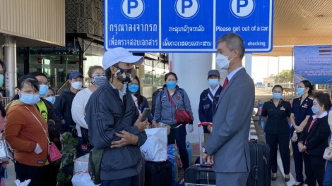 (VOVWORLD) -จากการที่พลเมืองเวียดนามในประเทศไทยที่มีฐานะยากจนมีความประสงค์ต้องการกลับประเทศผ่านทางบก กงสุญใหญ่เวียดนามในจังหวัดขอนแก่นได้ประสานงานกับสำนักงานที่เกี่ยวข้องของไทยและลาวเพื่อจัดรถพาชาวเวียดนาม 60 คนกลับประเทศ ซึ่งการพาพลเมืองกลับประเทศผ่านทางบกผ่านประเทศที่สามเป็นกิจกรรมที่ไม่เคยมีมาก่อน