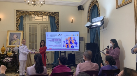 (VOVWORLD) - บ่ายวันที่ 29 ตุลาคม ณ กรุงฮานอย สถานเอกอัครราชทูตไทย ณ กรุงฮานอยได้จัดพิธีมอบรางวัลสมเด็จเจ้าฟ้ามหาจักรีหรือ PMCA ประจำปี 2021 ครั้งที่ 4 สำหรับปีนี้ เนื่องจากการแพร่ระบาดของโรคโควิด-19 ทำให้พิธีมอบรางวัล PMCA นอกจากจัดขึ้นที่กรุงเทพฯแล้วยังมีการจัดขึ้นในรูปแบบออนไลน์ ณ สถานเอกอัครราชทูตไทยในต่างประเทศ