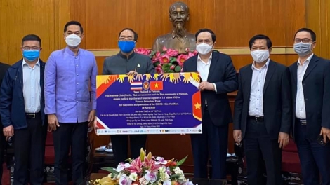 ทีมประเทศไทย ภาคเอกชนและชุมชนไทยในเวียดนามร่วมบริจาควัสดุทางการแพทย์และเงินสมทบทุนกว่า ๑.๗ พันล้านด่งเพื่อบรรเทาผลกระทบจากโรคโควิด ๑๙ ในเวียดนาม