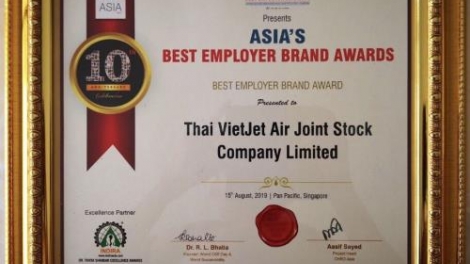 (VOVWORLD) - สายการบิน Thai Vietjet ได้รับรางวัล Asia’s Best Employer Brand ประจำปี 2019