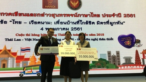 (VOVWORLD) - เช้าวันที่4พฤษภาคม ณ มหาวิทยาลัยฮานอย ได้มีการจัดการประกวดกล่าวสุนทรพจน์ภาษาไทยครั้งที่5ภายใต้หัวข้อ “ไทย-เวียดนาม เพื่อนบ้านที่ใกล้ชิด มิตรที่ผูกพัน” โดยมีนักศึกษายอดเยี่ยม20คนจากมหาวิทยาลัยต่างๆ เช่น มหาวิทยาลัยฮานอย มหาวิทยาลัยภาษาต่างประเทศสังกัดมหาวิทยาลัยแห่งชาติฮานอย เป็นต้นเข้าร่วม โดยมีนาย เหงวียนวันจ่าว อธิการบดีมหาวิทยาลัยฮานอยและน.ส.วันทนีย์ วิพุธวงศ์สกุล อุปทูตสถานทูตไทยประจำเวียดนาม ครูอาจารย์และนักศึกษาของมหาวิทยาลัยต่างๆเข้าร่วม