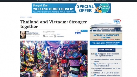 (VOVWORLD) -ในโอกาสการเยือนไทยของนายกรัฐมนตรีเวียดนาม เหงวียนซวนฟุก ในระหว่างวันที่17-19สิงหาคม สื่อต่างๆของไทยได้ลงบทความที่ชื่นชมความสัมพันธ์ระหว่างสองประเทศ