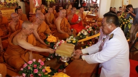 ภาพถ่ายของงานบุญกฐินพระราชทานที่วัด chua Phap Luan ในกรุงเว้
