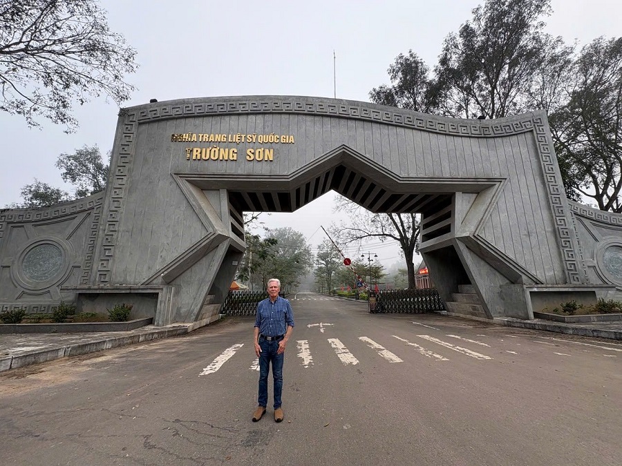 นาย Craig McNamara ถ่ายรูปที่สุสานทหารพลีชีพเพื่อชาติ เจื่องเซิน ในจังหวัดกว๋างจิ |