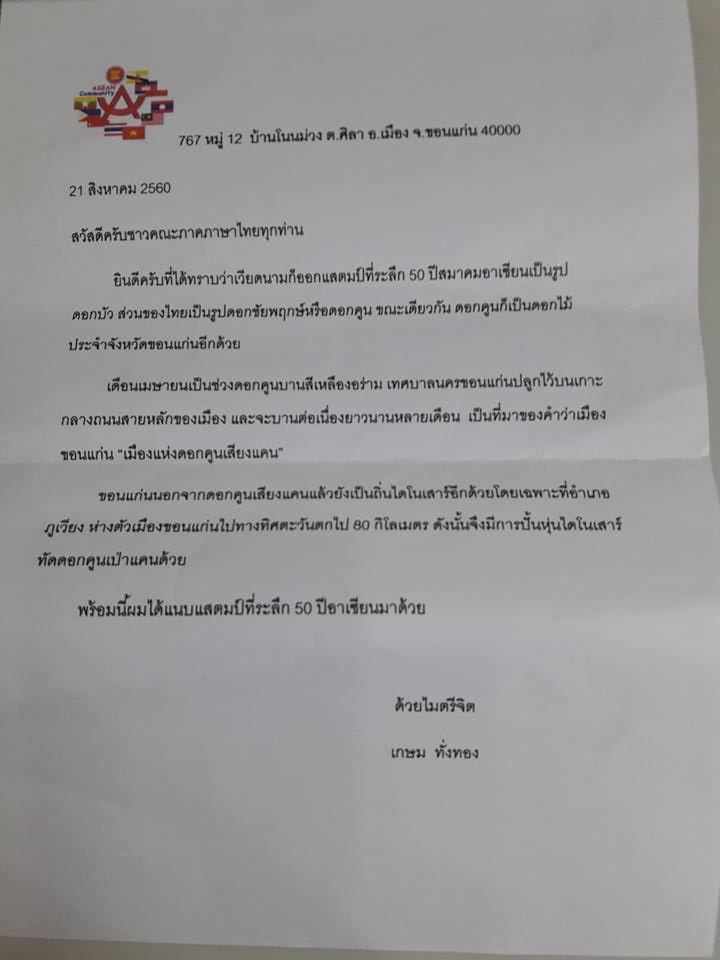 (VOVWORLD) - ยินดีครับที่ได้ทราบว่า เวียดนามก็ออกแสตมป์ที่ระลึก 50 ปี สมาคมอาเซียนเป็นรูปดอกบัว ส่วนไทยเป็นรูปดอกชัยพฤกษ์หรือดอกคูน