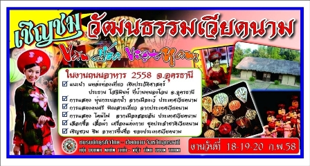 *** สวัสดีคณะผู้จัดวิทยุเวียตนาม กลับมาทักทายช่วงปลายเดือนอีกแล้วนะคับ กาลเวลาเดินไวมาก พึ่งผ่านปีใหม่ไปไม่นาน เดือนมกราคมก็จะผ่านพ้นไปอีกแล้ว จะก้าวเข้าสู่เดือนที่2ของปีแล้ว เป็นเดือนที่มีการเตรียมการเพื่อที่จะต้อนรับเทศกาลเต๊ดขึ้นปีใหม่ของเวียตนาม ที่อุดรธานีปีนี้ชาวไทยเชื้อสายเวียตนามอุดรธานีก็จะพร้อมใจกันจัดงานเทศกาลเต๊ดอย่างยิ่งใหญ่ มีการแสดงทางด้านวัฒนธรรมและแนะนำให้คนไทยจังหวัดอุดรธานีได้ทราบวัฒนธรรม ที่สวยงามของดินแดนและประชาชนเวียตนาม ผมได้ส่งโปสเตอร์งานมาให้ดูกันจะได้ช่วยประชาสัมพันธ์อีกแรง
