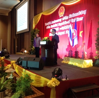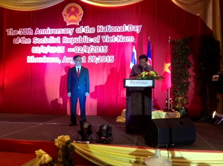 (VOVworld) - เนื่องในโอกาสวันชาติเวียตนาม ครบ 70 ปี ที่เมืองไทยชุมชนชาวไทยเชื้อสายเวียตนามก็มีกิจกรรมเพื่อรำลึกถึงวันสำคัญ ยิ่งนี้ ผมได้ส่งภาพกิจกรรมงานเลี้ยงในโอกาสวัดชาติเวียตนามครบ 70 ปีจัดโดยสถานกงสุลเวียตนาม ณ ขอนแก่นมาให้ชมกันคับ
