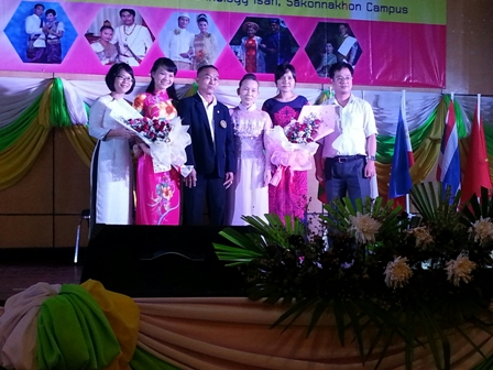 Kính thưa toàn thể các anh chị trong VOV, tuần qua tại trường มหาวิทยาลัยเทกโนโลยีราชมงคลอีสาน đã tổ chức giao lưu văn hóa với 5 trường đại học đến từ Việt Nam, Lào,Campuchia và Mianma, trong đó Việt Nam có 2 đoàn đến từ trường đại học nông lâm Huế và trường đại học ngoại ngữ Đà Nẵng. Nhân dịp này nhà trường đã mời Cộng đồng người Việt Nam tại Phăng Khôn cùng dự buổi liên hoan đón tiếp và tiễn đưa đoàn, chúng tôi vô cùng vui mừng được gặp những người anh em thân thiết, trong buổi liên hoan có ca múa của các đoàn đến từ các nước trong bầu không khí thắm tình hữu nghị, buổi gặp mặt cũng tới lúc chia tay. Chúng tôi lưu luyến không muốn rời nhau. Xin chào tạm biệt.
