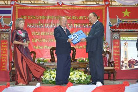 Ngày 19/8 đúng ngày kỉ niệm ngày Cách mạng tháng tám , Thủ tướng đã có buổi gặp gỡ với kiều bào các tỉnh vùng đông Bắc Thái Lan tại khu tưởng niệm Chủ Tịch Hồ Chí Minh. Trong bài nói chuyện với kiều bao, Thủ tướng thay mặt Đảng , chính phủ và đồng bào cả nứơc gửi lời thăm hỏi ân cần tới toàn thể kiều bào, đánh giá cao Cộng đồng NVN tại Thái lan nói chung và khu vực vùng đông Bắc nói riêng đã thương yêu đùm bọc lẫn nhau, có nhiều doanh nhân thành đạt, con em người Thái gốc Việt rất nhiều người được làm việc trong chính quyền nhà nước . Thủ tướng mong muốn trong tương lai sẽ có con em gốc Việt là đại biểu quốc hội thậm chí là thứ trưởng, bộ trưởng . Nhân dịp này, Thủ tướng đã tặng 5 suất học bổng cho con em Việt kiều, 10 nghìn đô là cho khu tưởng niệm Chủ Tịch Hồ Chí Minh, 700 quyển sách, một bức tranh Bác Hồ đang bắt nhịp hát bài ca kết đoàn và tặng bằng khen cho Ông Cao Văn San,15 suất qùa cho các chú, bác đã có nhiều thành tích đóng góp vào công cuộc giải phóng dân tộc và xây dựng đất nước.