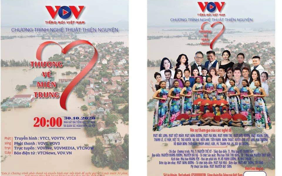 โปสเตอร์รายการศิลปะ “มุ่งใจสู่ภาคกลางที่รัก” ที่จัดโดยสถานีวิทยุเวียดนามเพื่อรณรงค์รับบริจาคเงินช่วยเหลือประชาชน |