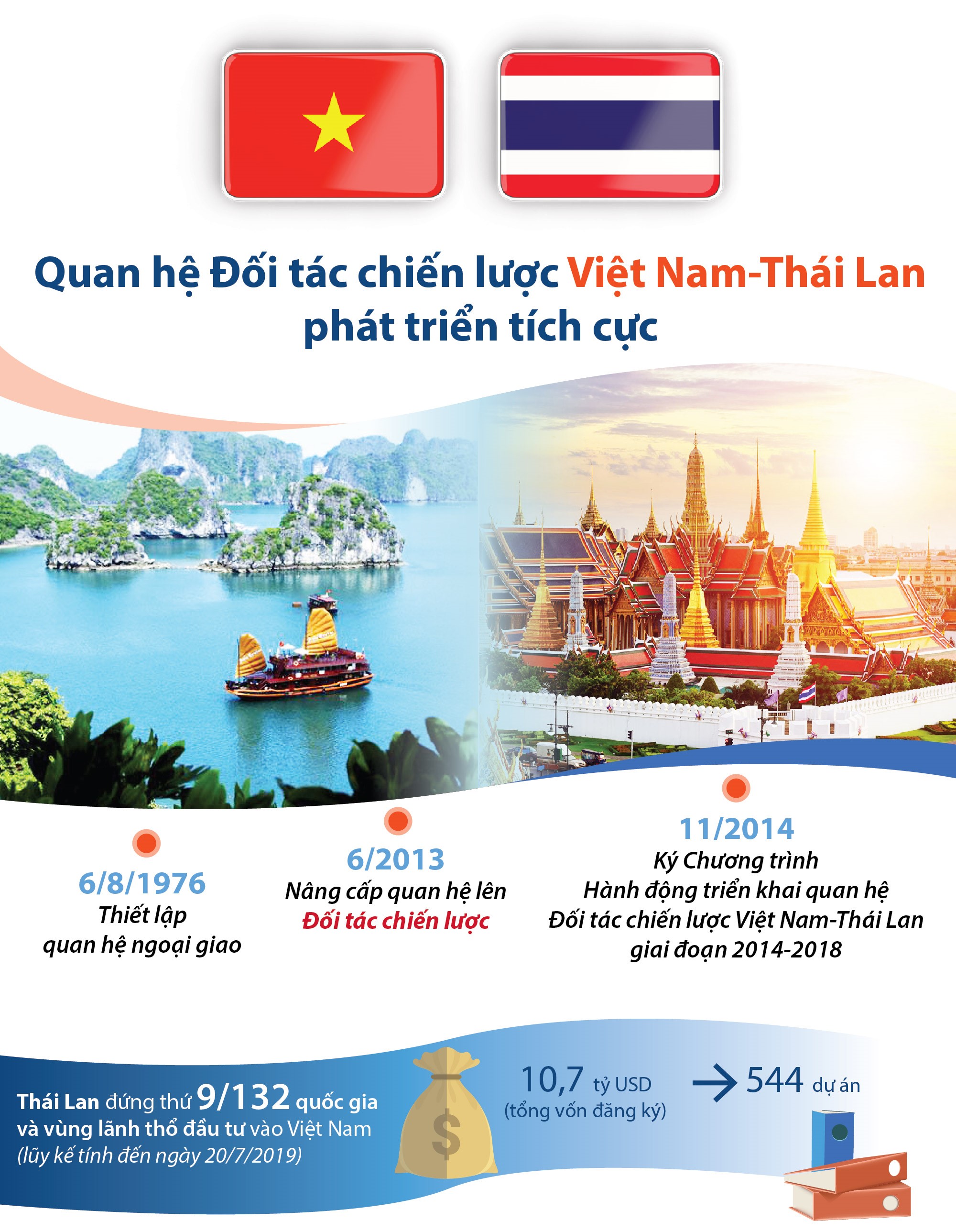 ในตลอด 48 ปีที่ผ่านมา ความสัมพันธ์ระหว่างเวียดนามกับไทยนับวันพัฒนาอย่างแน่นแฟ้นและเข้มแข็งในหลายด้าน โดยเฉพาะทั้งสองประเทศได้ยกระดับความสัมพันธ์ขึ้นเป็นหุ้นส่วยยุทธศาสตร์ในโอกาสการเยือนประเทศไทยของท่าน เหงวียนฟู้จ่อง เลขาธิการใหญ่พรรคเมื่อเดือนมิถุนายน ปี2013 ซึ่งเป็นสองประเทศแรกในอาเซียนที่ยกระดับความสัมพันธ์ให้เป็นหุ้นส่วนยุทธศาสตร์ ต่อมา เมื่อปี 2019 ได้ยกระดับความสัมพันธ์ให้เป็นหุ้นส่วนยุทธศาสตร์ที่เข้มแข็ง โดยมีวัตถุประสงค์เพื่อกระชับความร่วมมือทวิภาคีให้เข้มแข็งและรอบด้านมากขึ้น