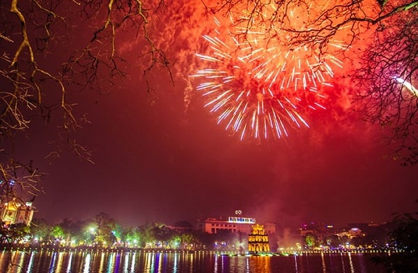 ในช่วงส่งท้ายปีเก่าต้อนรับปีใหม่ จะมีการยิงดอกไม้ไฟในกรุงฮานอย |