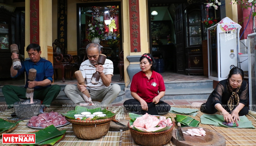 อาชีพการทำหมูยอของหมู่บ้านเอื๊อกเหลมีมานานเกือบ 500 ปี (Photo: VNA) |