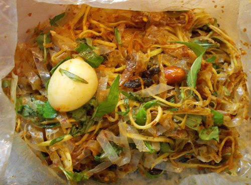 แบ๊งช้างโจ่น ที่มีส่วนผสมของเส้นก๋วยเตี๊ยวอบแห้ง มะม่วง เนื้อวัวแห้ง ไข่นกกระทาต้มคลุกเคล้ากับน้ำจิ้มที่มีรสชาติหวาน เปรี้ยว เผ็ดและเค็ม