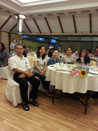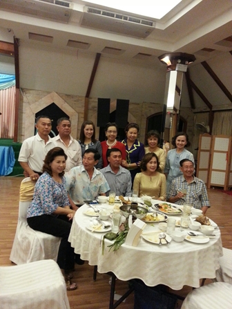 (Kính thưa toàn thể cán bộ trong ban biên tập cùng phát thanh viên VOV5 kính mến. Tối ngày 7/11 vừa qua Hội người Việt Nam tỉnh Sakonnakhon chúng tôi có họp liên hoan gặp mặt để kiểm điểm lại những việc đã làm và báo cáo sổ sách thu chi trong năm. Đây cũng là kì họp kết thúc nhiệm kì công tác của của chủ tịch Hội người Việt Nam tỉnh Sakon ( ông Lê Văn Huấn ) cùng với ban chấp hành. Ngày 29/11 tới sẽ bầu chủ tịch cùng 25 thành viên với nhiệm kì 4 năm . Toàn thể kiều bào trong huyện Mường sẽ đi bỏ phiếu kể từ 8h đến 15h , có ban tổ chức bầu cử (กกต) đúng như bầu cử các ngành của Thái vậy. Cuối cùng là phần văn nghệ trong không khí vui tươi đầm ấm. Cuối cùng xin gửi kèm một vài tấm ảnh chụp trong buổi liên hoan, chúc toàn thể các anh chị vui khỏe.