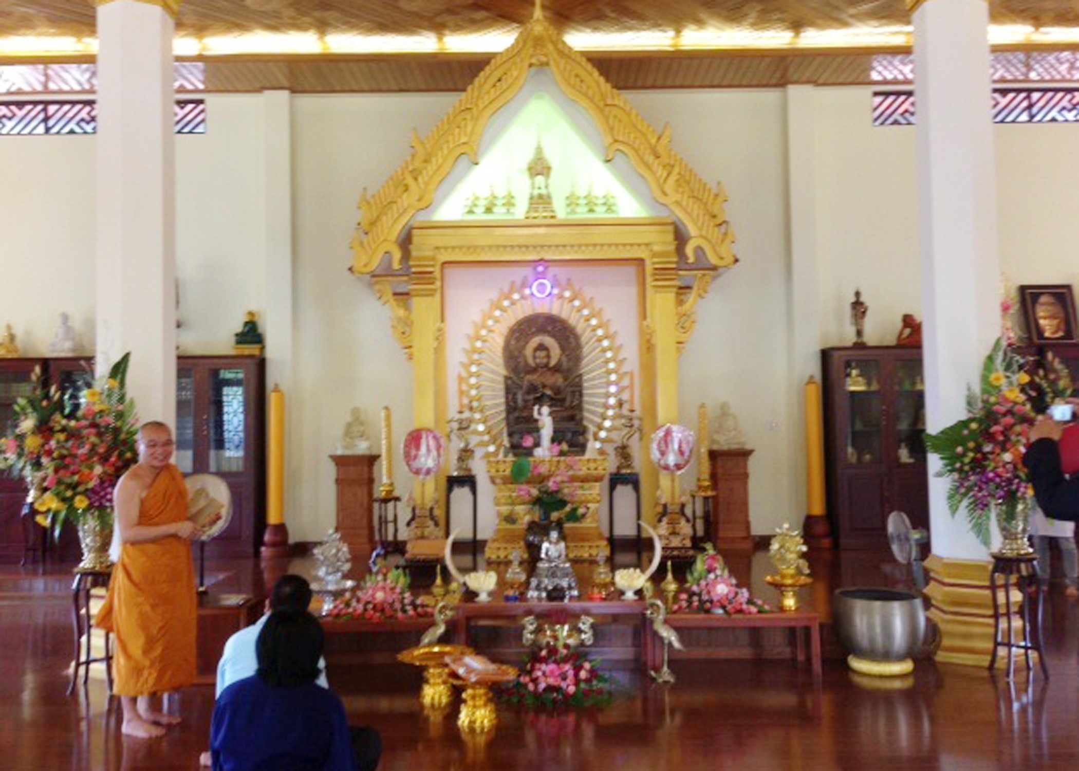 สวัสดีชาวคณะภาคภาษาไทยวิทยุเวียตนาม..มาทักทายกันอีกช่วงปลายเดือนตุลาคม 56 นะคับ..ใกล้จะสิ้นปีแล้วเหลือเวลาอีก 2 เดือนพวกเราก็จะก้าวเข้าสู่ปีใหม่ 2014 กันแล้วนะคับ..ภารกิจที่วางแผนจะทำในปีนี้..บรรลุเป้าหมายกันมั้งหรือยังคับ..รีบเร่งมือกันได้แล้วนะคับ..ช่วงนี้ในไทยอากาศก็เริ่มเข้าสู่ฤดูหนาวกันแล้ว..อากาศเริ่มแห้งและเย็นลงมาก..มืดค่ำเร็วด้วย..นักเรียนก็ได้เปิด เรียนภาคที่2ของปีการศึกษากันแล้ว...การท่องเที่ยวที่ซบเซาหลายเดือนก็เริ่มจะคึกคัก..มีนักท่องเที่ยวเข้ามาเที่ยวกันแล้ว..โดยเมื่อต้นสัปดาห์เมื่อวันที่ 19 ตุลาคม..ก็เป็นวันออกพรรษามีงานบุญ..ที่สำคัญหลายงานเช่น งานแห่ปราสาทผึ้งสกลนคร..งานไหลเรือไฟ..นครพนม..งานบั้งไฟพญานาคหนองคาย..ผู้คนมาร่วมงานบุญอย่างคึกคัก..ทำให้การค้าขายดีขึ้น..มีเงินสะพัด หมุนเวียนจำนวนมาก..สร้างรายได้ให้กับคนในท้องถิ่นเป็นอย่างมาก..ช่วงนี้ก็เป็นช่วงเทศกาลถวายผ้าพระกฐิน..เป็นเวลา 1 เดือนหลังออกพรรษาด้วย..คนไทยที่มีจิตศรัทธาต่อพุทธศาสนา..ก็หลั่งไหลไปร่วมงานกฐินอย่างมากมาย...เพราะเป็นงานบุญที่ได้อนิสงฆ์อย่างมาก..ปีนี้สถานเอกอัครราชทูตไทย ณ กรุงฮานอย..ก็ได้กฐินพระราชทาน..จากองค์พระบาทสมเด็จพระเจ้าอยู่หัว..มาทอดถวาย ณ วัดธัมมจักการาม..หรือวัด Phap Luan..ที่กรุงเก่าเว้ด้วย..มีหมายกำหนดการทอดถวายในวันที่ 26 - 27 ตุลาคม 2556 นี้..ผมจึงได้ส่งภาพของวัดธัมมจักการามนี้..มาให้ช่วยเผยแพร่ด้วย..จะได้รับบุญกุศลดีๆทั่วกันนะคับ