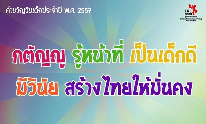สวัสดีปีใหม่ครับ..ทักทายชาวคณะภาษาไทยในสัปดาห์ต้นปี....สัปดาห์นี้เป็นวัน ทำงานวันเเรกของปีใหม่..หลังจากที่ได้หยุดพักผ่อนหลายวัน..กลับมาทำงานด้วยความสดชื่น....จากการได้เติมพลัง..ที่เมืองไทยในวันเสาร์ที่ 11 มกราคม 2557 นี้ก็จะเป็นวันเด็กแห่งชาติ..วันที่ผู้ใหญ่ให้ความสำคัญกับเด็กๆซึ่งเป็นอนาคตของชาติ..มีการจัดกิจกรรมต่างให้เด็กๆ..สถานที่ราชการก็เปิดให้เด็กเข้าชม..รวมทั้งที่ทำเนียบรัฐบาลก็เปิดโอกาสให้เด็กๆได้นั่งโต๊ะทำงานของนายกรัฐมนตรีด้วย..มีคำขวัญวันเด็กประจำปีของท่านนายกรัฐมนตรี..ให้เด็กๆได้ นำไปปฏิบัติด้วย