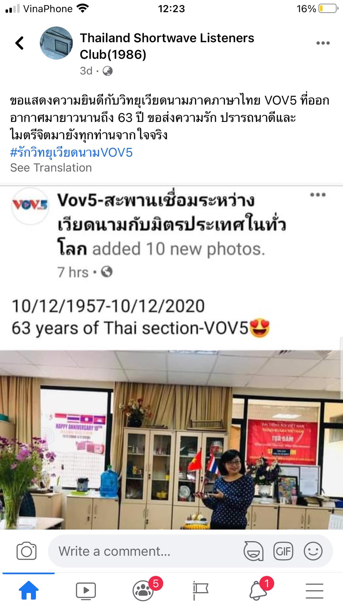 แฟนพันธุ์แท้ของรายการหลายท่าน เช่น อาจารย์ เกษม ทั่งทอง คุณ Phiichest Thongphoom และชมรมผู้ฟังวิทยุคลื่นสั้นแห่งประเทศไทยได้แสดงความยินดีในโอกาสรำลึกครบรอบ 63ปีวันก่อตั้งรายการภาคภาษาไทยสถานีวิทยุเวียดนาม ซึ่งตรงกับวันที่ 10 ธันวาคม อาจารย์ เกษม ทั่งทองได้เขียนว่า “63ปีของการทำหน้าที่เป็นสะพานเชื่อมทางอากาศกับมิตรประเทศทั่วโลก ขอเป็นกำลังใจให้ครับ” ส่วนคุณ Phiichest Thongphoom ได้บอกว่า “ขอแสดงความยินดี ที่แผนกภาษาไทยวิทยุเวียดนามครบรอบ 63 ปี ขอบคุณมากๆที่อยู่กับเรามานานแสนนาน เท่ากับอายุของคนๆหนึ่งเลยทีเดียว ได้รับประโยชน์ สร้างความเข้าใจ ความรู้ ข่าวสารอีกมากมาย” ส่วนชมรมผู้ฟังวิทยุคลื่นสั้นแห่งประเทศไทยได้เขียนว่า “ขอแสดงความยินดีกับวิทยุเวียดนามภาคภาษาไทย VOV5 ที่ออกอากาศมายาวนานถึง 63 ปี ขอส่งความรัก ปรารถนาดีและไมตรีจิตมายังทุกท่านจากใจจริง”