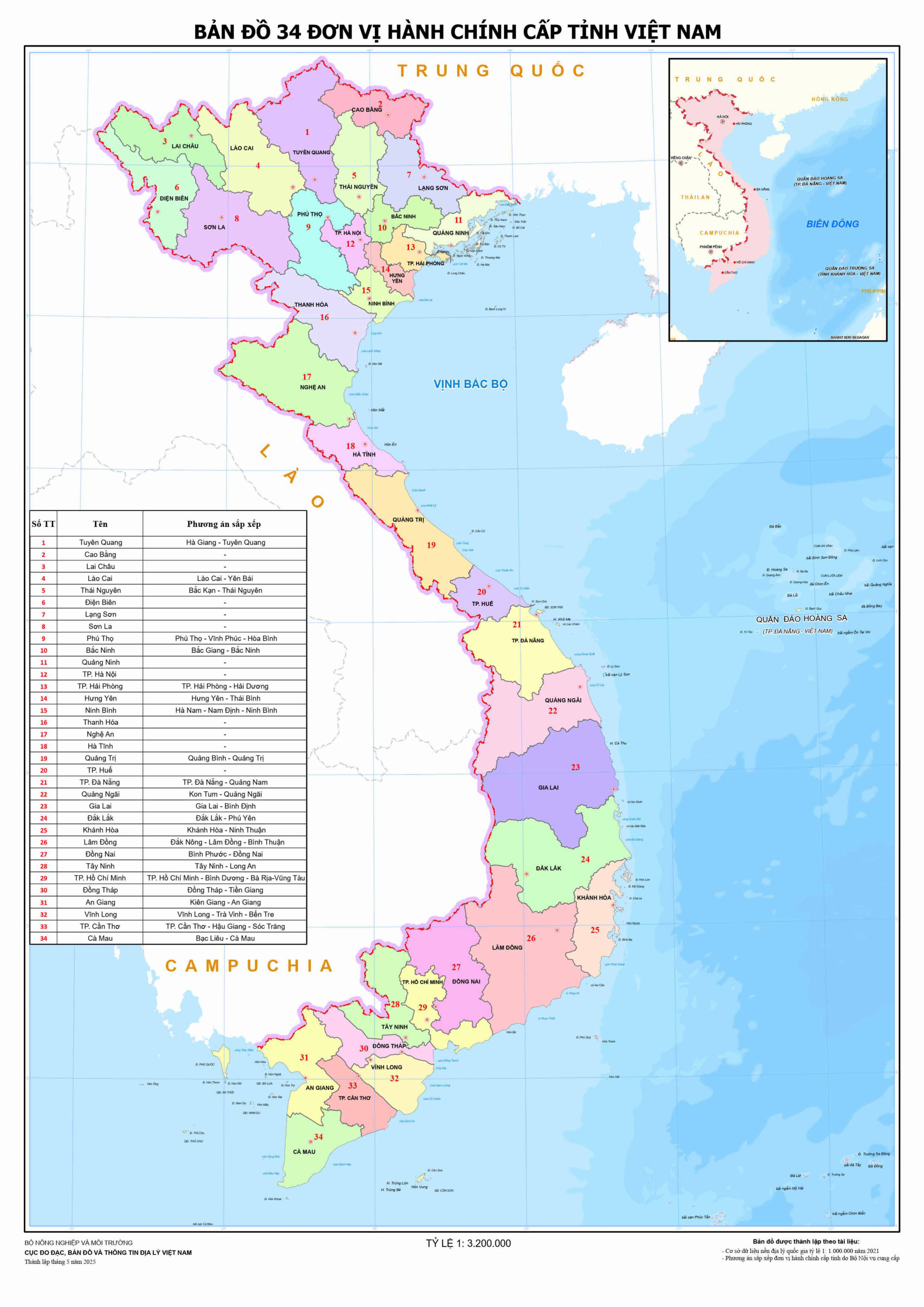 แผนที่ 34 จังหวัดและนครของเวียดนาม (https://thuvienphapluat.vn/) |