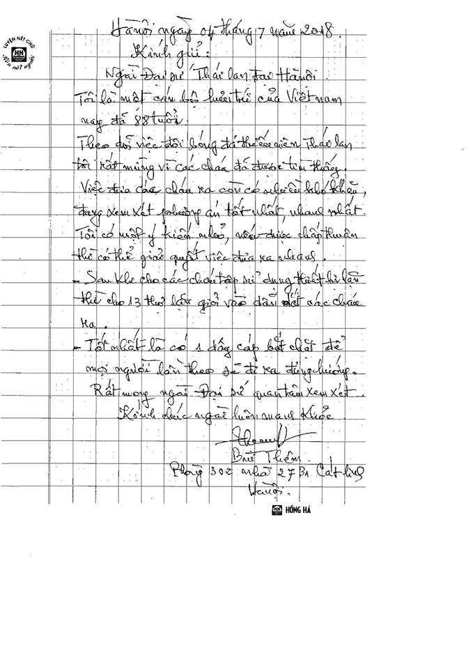 นอกจากนั้น นับตั้งแต่มีข่าวค้นหาทีมหมูป่าและทางการไทยกำลังวางแผนนำทีมหมู่ป่าออกจากถ้ำ ชาวเวียดนามหลายคนยังได้ส่งจดหมายให้กำลังใจถึงสถานทูตไทยในกรุงฮานอย เช่นนาย มายวันเทียม จากจังหวัดท้ายเงวียน ได้ส่งแผนที่ ภาพวาด เสนอวิธีช่วยทีมหมูป่า ส่วนนาย บุ่ยเทียม เจ้าหน้าที่เกษียณอายุราชการในกรุงฮานอยได้แสดงความยินดีเมื่อทราบข่าวว่าพบทีมหมูป่าแล้ว รวมทั้งเสนอวิธีพาทีมหมูป่าออกจากถ้ำเช่นกัน ซึ่งสิ่งนี้ได้แสดงให้เห็นว่า ชาวเวียดนามก็ติดตามเหตุการณ์นี้อย่างใกล้ชิด และอยากมีส่วนร่วมในภารกิจนำทีมหมูป่ากลับบ้าน