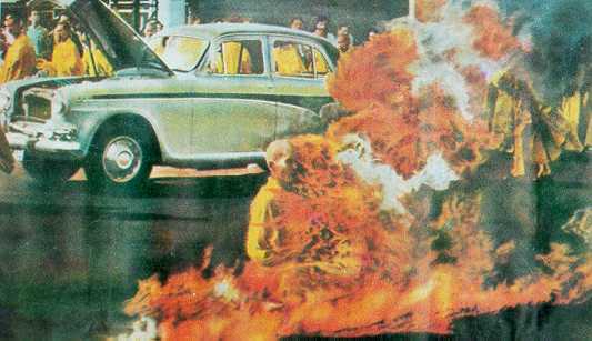 สำหรับข้อมูลเกี่ยวกับพระมหาเถระ ทิกกว๋างดึ๊ก นั้นก็ขอคัดเสนอให้คุณผู้ฟังได้ทราบว่า พระมหาเถระ ทิกกว๋างดึ๊ก มีชื่อสมัยเป็นฆารวาสคือ เลิมวันตึ๊ก เกิดเมื่อปี ๑๘๙๗ ดำรงตำแหน่งหัวหน้าคณะกรรมการพิธีกรรมของสมาคมพุทธศาสนาอาวุโสในสมัยนั้น และเป็นเจ้าอาวาสวัดเฟือกหว่า เมื่อวันที่ ๑๑ มิถุนายนปี ๑๙๖๓ พระมหาเถระ ทิกกว๋างดึ๊ก ได้เผาตัวเองที่กลางสี่แยกในไซ่ง่อน เพื่อประท้วงการปราบปรามพุทธศาสนาของทางการสาธารณรัฐเวียดนามของนาย โงดิ่งเหยี่ยม ภาพถ่ายพระมหาเถระ ทิกกว๋างดึ๊ก เผาตนเอง ได้รับการเผยแพร่ในทั่วโลกจนทำให้เกิดความสนใจเป็นพิเศษต่อนโยบายของทางการ โงดิ่งเหยี่ยม หลังจากมรณะภาพ อัฐิของพระมหาเถระ ทิกกว๋างดึ๊กถูกนำไปเผาซ้ำอีกครั้ง แต่หัวใจของท่านยังคงอยู่ จนศาสนิกชนนับถือท่านเป็นเหมือนพระพุทธเจ้า เป็นสัญลักษณ์ของความเมตตาอารีย์