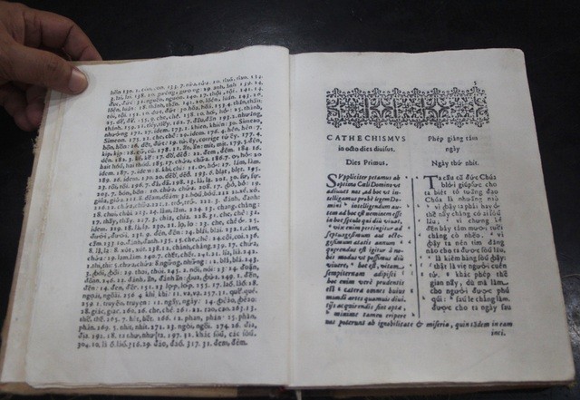 หนังสือภาษาก๊วกหงือเล่มแรกกำลังได้รับการเก็บรักษาที่โบสถ์หมั่งลังในอำเภอตวีอาน จังหวัดฟู้เอียน |