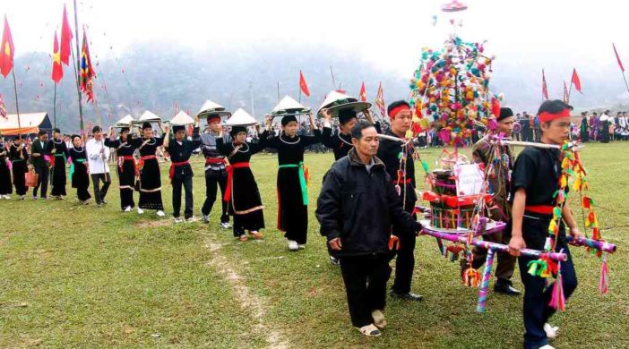 คุณเกษม ที่เวียดนามพิธีแรกนาขวัญมักจะมีขึ้นในช่วงต้นปีใหม่ ในอดีต นี่คือเทศกาลของชนเผ่าต่างๆในเขตเขาภาคเหนือ เช่นชนเผ่าไต่ หนุ่งและไย้ เป็นต้น เช่นเดียวกับประเทศไทย เทศกาลมีการเข้าร่วมเป็นจำนวนมากของชาวท้องถิ่น ในกรอบของงานมีการจัดพิธีเส้นไหว้ขอให้ฝนฝ้าตกต้องตามฤดูกาล แต่ไม่มีการเสี่ยงทาย